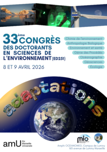 Le 33ème congrès de l’école doctorale Sciences de l’Environnement se tiendra les 8 et 9 avril 2026 sur le campus de Luminy (Marseille) dans l’amphithéâtre OCEANOMED (voir Accès). Il sera organisé par le MIO (Institut Méditerranéen d’Océanologie).
